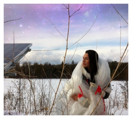 Sometimes I feel I am constricted by synthetic aspects to modern life, drifting further and further from mother earth, and my own culture. This is represented through the semitransparent plastic ensemble. Feelings of cultural suffocation.