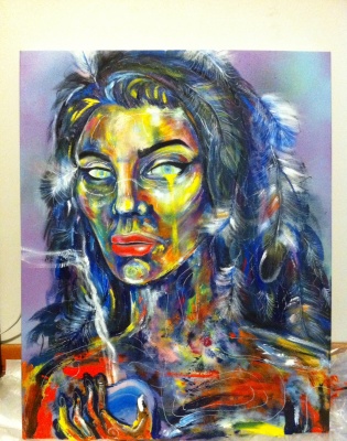 My name is Jasmine Wemigwans; I am an Aboriginal Woman and I am a status band member of the beautiful Wikwemikong Unseeded First Nation, located on Manitoulin Island. I have always had a great passion and love for the visual arts for as long as I can remember. My devotion for visual arts was the reason I decided to attend Wexford Collegiate School for the Arts, for their visual art program. As being an Artist creativity comes naturally to me in all aspects of my being and I try to remain positive and focus on my passion of art when life gets rough. Working with color and creating imagery that reflects my innermost thoughts is very rewarding and healing. It feels like lately my life has had more downs than ups, but painting brings me a release of that negative energy. As an Aboriginal woman I have encountered a number of challenges throughout my young life. Just being a visual minority in today’s society is challenging. In spite of our various differences, being an Aboriginal woman I share common concerns with the rest of the Aboriginal communities. With being an Aboriginal woman I feel I am viewed as more vulnerable in society; I feel more socially, economically and politically marginalized then our non-Aboriginal female counterparts. I have personally experienced racial stereotyping, discrimination. Not knowing my culture or speaking my native tongue of Anishinaabemodaa language leaves me feeling lost as Aboriginal woman and person. My piece, 'Resilience' was worked on during a very rough time period in my life, my family is falling apart and I feel we are becoming more of the stereotypical unstable "indian", Canadian media portrays. I do not like this sense of not having control, but painting this piece gave me hope that tough situations test you. Push you into the uncomfortable to make you change for the better. I feel like I have found my purpose; with painting. This will be my way of leaving my story and legacy on this earth. I am strong. I am independent and I will fight the statistics and work hard to achieve my goal of bringing my family out of darkness.