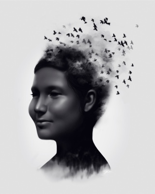The aesthetic of Vanished blends fragmentation and sentimentality, enshrining the stories of the lost in the central figure. Her form is ephemeral and disintegrating but her face endures, mirroring the strength and beauty of culture that cannot be erased. Each crow represents not a statistic but a stolen life, leaving behind only questions and grieving families. These women, though vulnerable in life and and overlooked in death, were anything but alone. The loss is intergenerational; mothers, daughters, and sisters have been taken and immeasurable hurt continues to echo through their broken communities. Until resolution is realized in the form of justice, all that can be done is to take care of one another, keeping the stories of these women alive.