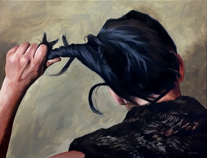 This work is part of a series of portraits depicting my mother in exaggerated emotive stages, displaying various states of recognition in each. I wanted to create this work as a way to further analyze a relationship that I often mistakenly view as familiar, to perhaps recognize the changing structure of a relationship when the individuals within it change as well. The portrait explores the relationship between mother and son, but also of artist and subject.