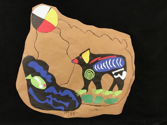 I followed the Woodlands artist with my friend Tyson. We got the idea to make a sun and fish because they come from nature.