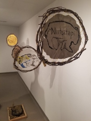 When creating my artwork, I wanted it to reflect the same sudden transition of lifestyle that Pudlow’s artwork “Aeroplane” evoked but viewed with a touch of my own ways of knowing. I played with the objective perspective that time-lapses expose and segmented them into 4 individual time periods within the history of turtle island. I wanted it to bring an optimistic field of thinking while capturing the juxtaposition between the preservation of traditional life and loss of it when moving forward into this new world of colonization. My aim for displaying the buffalo stone being covered in dirt is meant to act as a monolith for the history of turtle island. In my own way this is a statement to the future, when mouths will not be there to speak it; if dug up, what will archaeologists pull from the interpretation of this time period? What do you as the viewer think of this time period?