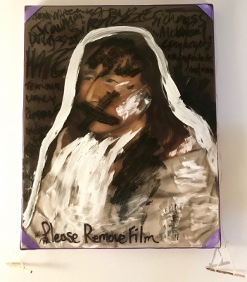 I have portrayed the 60’s Scoop experience of my Mother through a cultural timeline that adds textured layers until the final unveiling. The first layer creates a blurred film with black and white colours blocking the portrait. The surrounding words in ink reveal my Mothers experienced life feelings as she lives with the 60s scoop story: identity and belonging. The white band around her body represents the loss of identity as she was surrounded by whiteness, thinking herself to be white, like the white family who adopted her. The black and white scratches on her represent the deafening silence and pain, tortured identity. The inked words scream out what she couldn’t explain at the time. As she healed from the trauma, layers of racism, hate, disconnection and survival are removed. The viewer is meant to remove the first layer: “Please remove film”. The second layer is thus revealed. It is meant to be removed by the viewer to reveal my Mothers’ oil portrait as she is today. As a testament of warrior hood and a life giver. I give back memory to her Sundance chest - piercings, covered by a healing medicine known as Sage. 24 piercings mark her body. The Last layer hangs beside her. Her actual piercing pegs that has defined her journey of toxicity to peaceful resonance. The depth of human strength is in her. With the plastic film removed, we only see her and her piercings, not her past, not her hurt, not her trauma, not her stereotypes, but rather her beauty. Her innocence. Her healing.